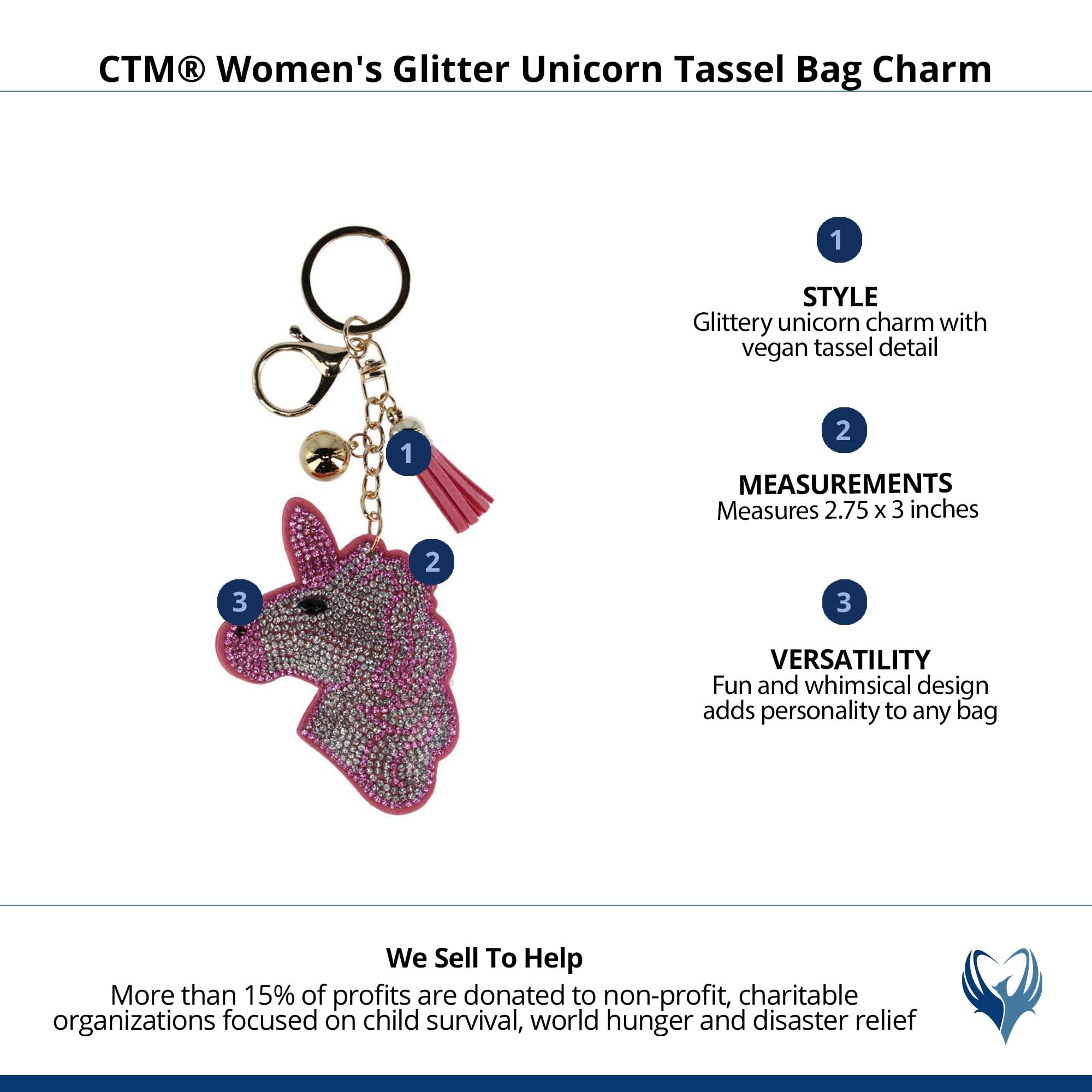 CTM Women's Glitter Unicorn Tassel Bag Charm