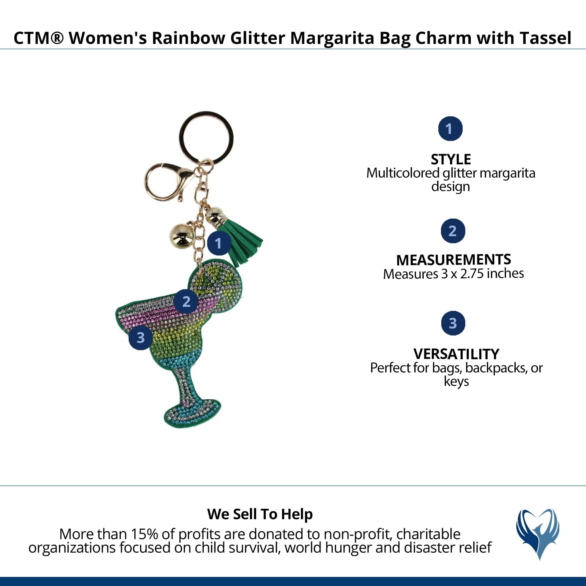 CTM Women's Rainbow Glitter Margarita Bag Charm with Tassel